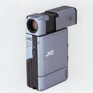 , which could hold nearly 8 times as much data as a CD, allowing a full 2 hour cinema film to be covered. With this new compression, digital film (actually tape) cameras entered the home market, beginning with the JVC GR DV-1