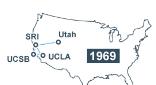The first network connections are made betwen UCLA, SRI International and UC Santa Barbara, demonstrating the feasibility of a distributed network and communications based on packet switching. This expands to 15 sites by 1971, and rapidly expands thereafter, stimulated by and stimulating international scientific collaboration. Initial applications included Telnet for direct communication, SMTP and POP3 for delayed communication (email), and file transfer (FTP).